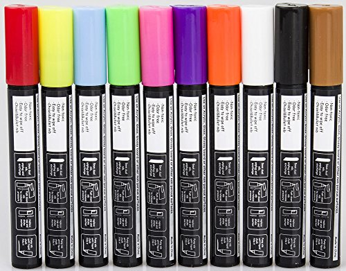 - Title : Colorful Liquid Chalk Markers - Best Use On Non Porous Surface - 5mm Reversible Tip Made in Japan - 10 Pack Vibrant Colors - Perfect for Decorations on Christmas, Thanksgiving, New Year's Eve, Birthday, Wedding Parties and any Events, Suitable for Kids, School, Restaurant and Business - NON-TOXIC, More Ink, 100% Money Back Guarantee
