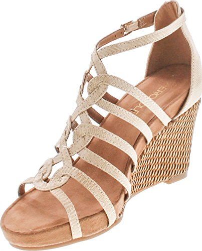 Studio : Aerosoles Publisher : Aerosoles Binding : Apparel Product Description Raffia-covered wedge calls attention to this chic sandal, with its infinity loop straps entwined to perfection. core comfort, with a super-soft memory foam footbed, keeps you in the feel-good lane all day. buckle entry on a slim strap that creeps toward the ankle. 3¾” wedge includes a ¾” platform to put you on top of the world 0