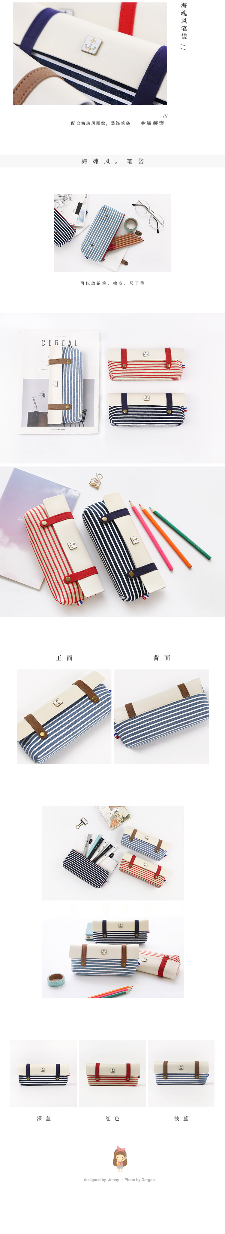 韩国简约笔袋女大容量文具袋学生条纹铅笔袋创意文具盒