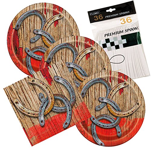 Rodeo Western Party Themed Dessert Plates And Napkins includes Spoons Serves 32