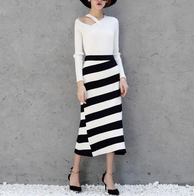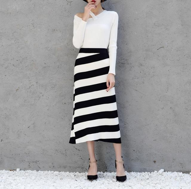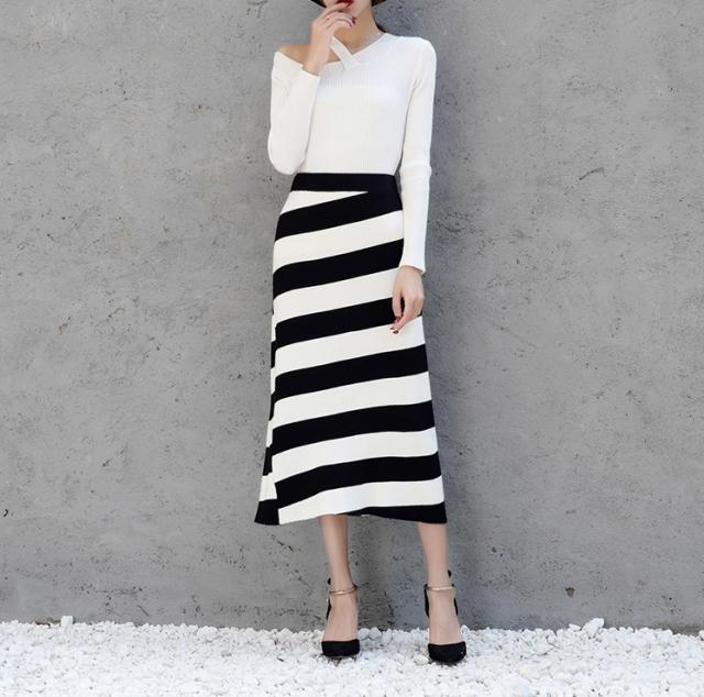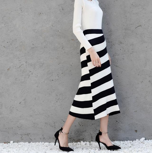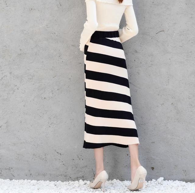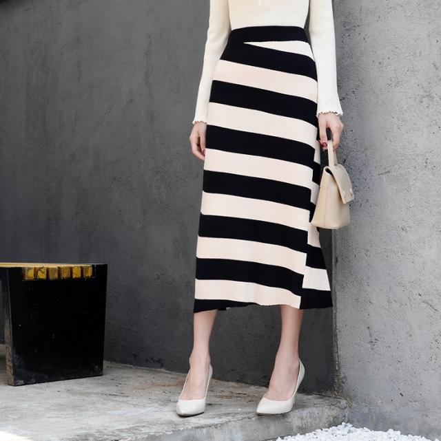 太ピッチのボーダー柄でバイカラーに仕上げたスカートです♪