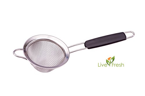 LiveFresh Fine Mesh Stainless Steel Mini Tea Strainer with Non Slip Handle - 3 inch - Ideal Size for Straining Teas and Cocktails or Sifting Flour, Sugar, Spices, and Herbs