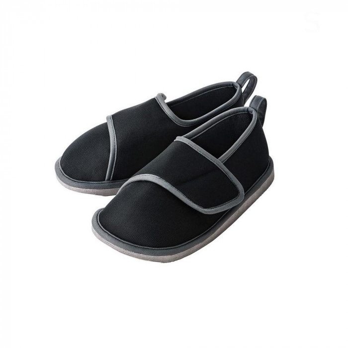 わずかな段差や滑りやすい床での転倒を予防する室内専用シューズです。履きやすく履かせやすい面ファスナー式。中敷の滑り止め加工により足のズレを予防します。底面には3か所の滑り止めがあります。 |