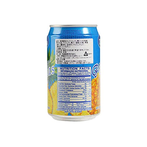 原材料:パイナップル果汁、糖類(砂糖、果糖)、香料、酸味料、甘味料(アセスルファムK)、着色料(β-カロテン)