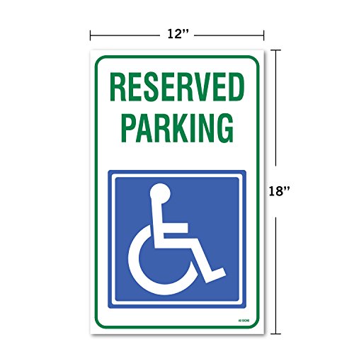 Handicap Parking Sign - 12"x18" Inch Vinyl Sticker Blue on White, Indoor and Outdoor Use, Rust Free, UV Protected, Waterproof, Self Adhesive