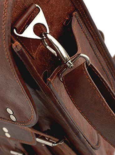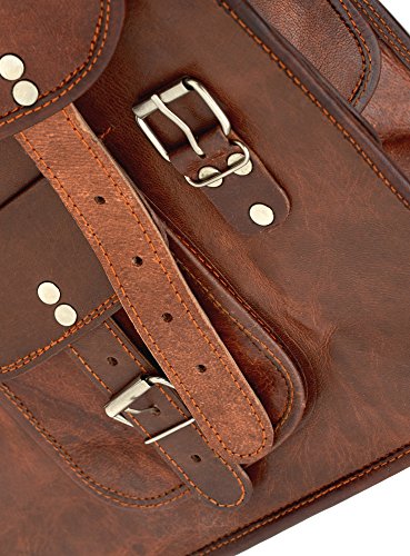 -. Feature : Dimensions: H 37cm, W 28cm. D 14.5cm. / 100% genuine goath leather which ages gracefully and softens with use. Brand new bag may also have a distinctive leather smell which will fade with 4-6 weeks of regular use. / Flap closure with buckles. Outer pockets, inner compartments and pockets. / Weight 1050g. / This unique bag is suitable for carrying ipad or laptop, day at school, work, college or everyday use.