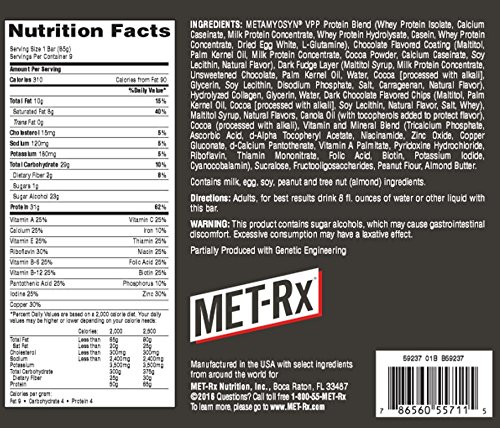 ReleaseDate : 2015-05-26 Studio : Nature's Bounty Publisher : Nature's Bounty Binding : Health and Beauty Product Description MET-Rx Protein Plus protein bar offers the kind of on-the-go nutrition you won't want to be without. This tasty bar has 32 grams of protein and features METAMYOSYN, a blend of slow and fast-acting proteins that gives you the edge you need both in and out of the gym. In addition to high-quality protein, each bar has vitamins for energy metabolism and 1 gram of sugar and 0 grams of trans fats. MET-Rx Protein Plus is a delicious, naturally flavored protein bar that helps fuel your body as you work to achieve your fitness goals.* 0