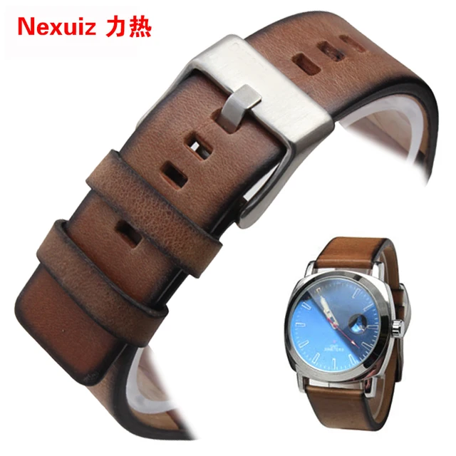 24 미리메터 갈색 복고풍 시계 밴드 높은 품질 정품 가죽 스트랩 스테인레스 스틸 버클 DZ