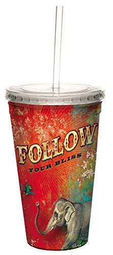 Tree-Free Greetings 35485 Angi and Silas Follow your Bliss Double-Walled Cool Cup with Reusable Straw, 16-Ounce