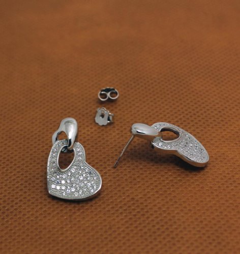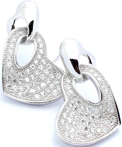 -. Title : Rhodium Plated 925 Sterling Silver Micro Pave Cubic Zirconia CZ True Heart Open Elegant Love 2013 Post Back Stud Earrings