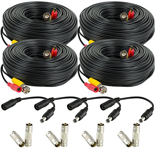 Amcrest 4-Pack 100 Feet Pre-Made All-in-One Siamese BNC Video and Power CCTV Security Camera Cable with Two Female Connectors for 960H & HD-CVI Camera and DVR (SCABLEHD100B-4pack)