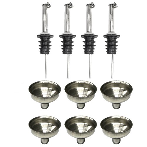 -. Title : Aoyoho 6 Packs Stainless Steel Mini Funnel and 4 Packs Oil Pour Spouts Upgrade Stainless Steel Wine Liquor Bottle Pourer Spout with Covers