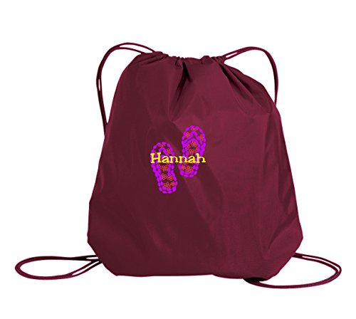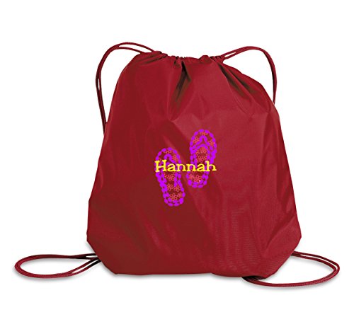 Product Description Whether you go to school, gym, hiking, picnic or outdoor activities, The Flip Flop Personalized - Drawstring Sack Cinch Backpack is a perfect choice to take along. It is made using quality 210-denier oxford nylon. It further sports dyed-to-match draw cord closure that keeps things from falling. This cinch pack is spacious enough to carry all your essentials and sports matching cords that efficiently adds to the versatility of this bag. This multipurpose bag is preferred by people of all age groups. 0