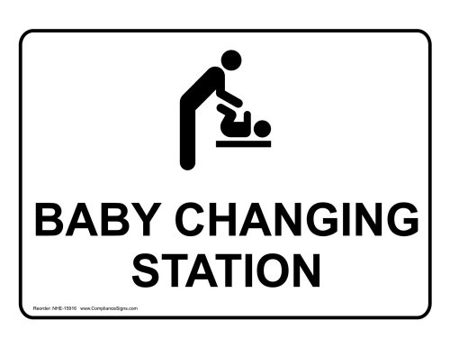 -. Feature : White restrooms sign identifies your baby changing station location with a symbol and English text / Semi-rigid, 1mm PVC plastic with clear protective laminate / Rounded corners with 0.20-in. mounting holes for easy installation / Resists UV, chemicals, abrasion and moisture - use indoors or out / Made in the USA.