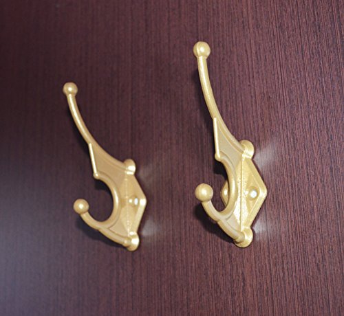 Double Wall Hooks Shabby Cottage Chic Gold Iron Pack Of 2 Key Holder Coat/Jacket Organizer Kitchen Utensils Hooks Set Of 2