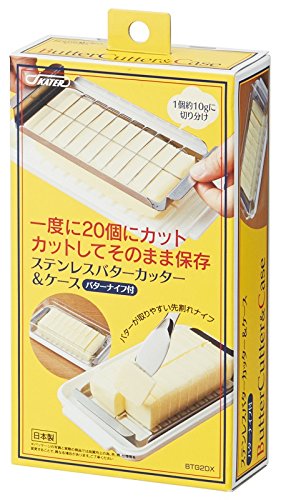 ◆ at once cut to about 10g with the push from the cut in 20 pieces at once! The butter of 200g of the block will be cut into 20 equal parts. A measure of the amount of candy making and bread making! Prevent the overuse and cut in advance. It will also be the calorie control. ◆ save while wearing as it is stored butter cutter to cut. ◆ retrieved pierce the butter carved with previous cracking type of butter knife. / ■ Specification ■ body size (approximately): width 10.7 × depth 19.0 × height 4.3cm Accessories: previous cracking type of butter knife /