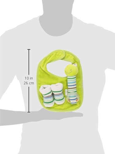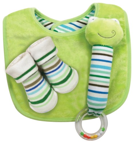 Stephan Baby Ultra Soft Plush Chewbie Squeaker Rattle, Bootie Socks and Reversible Bib Gift Set, Fred the Frog (Discontinued by Manufacturer)