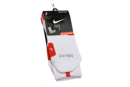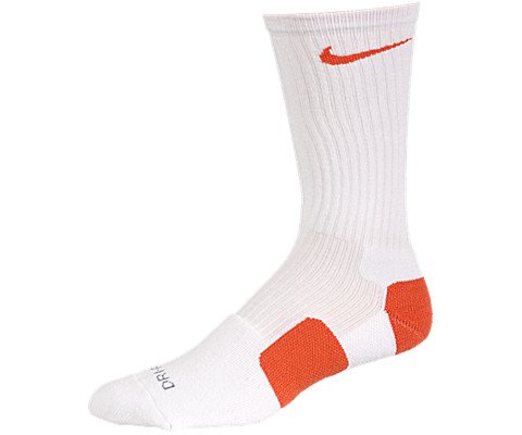 Studio : Nike Publisher : Nike Binding : Misc. Product Description Kick your training into high gear with this Elite Crew Sock from Nike. This Dri-FIT sock wicks away sweat to keep your feet feeling fresh and comfortable. The reinforced heel and toe enhance durability and cushioning while arch compression provides additional support. Left and right foot specific design for a better fit on your feet. The Nike Swoosh logo is sewn in at the top. 62/21/15/2 polyester/nylon/cotton/spandex. Imported. 0