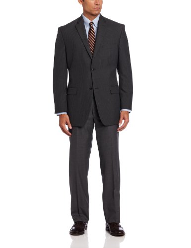 Product DescriptionThis haggar charcoal heather textured pin stripe classic fit suit separate coat comes in a two button, center vent, flap pocket model0