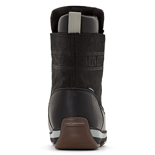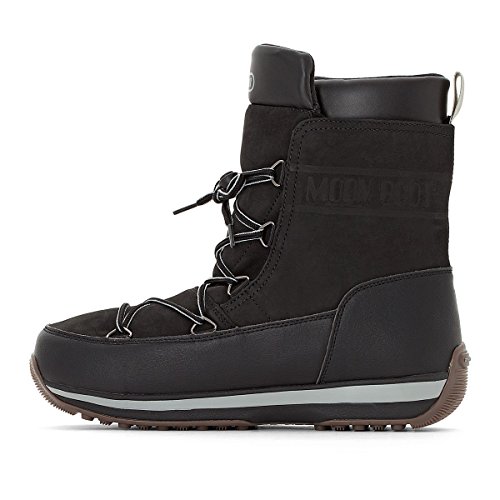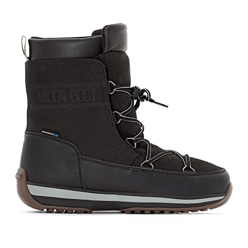 Binding : Apparel Product Description Tecnica Moon Boot Lem Leather feature nubuck leather and synthetic uppers, waterproof membrane, thermal foam lining, removable warm waterproof lining, synthetic foam with felt lining and cushioning inner sole, slip resistant TPR outsole unit, round toe front, d-ring eyelet lace up front closure and the Moon Boot branding printed on the front. 0
