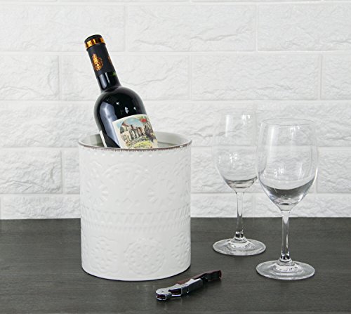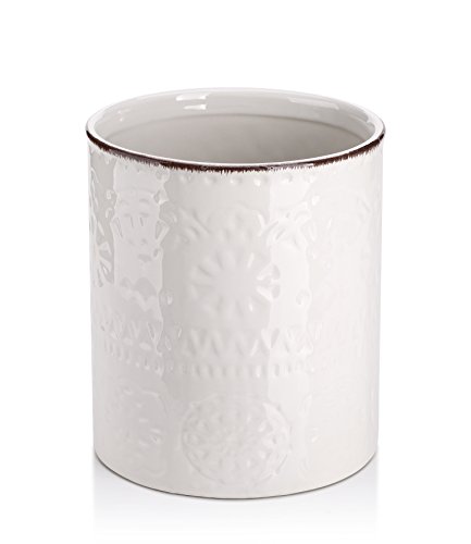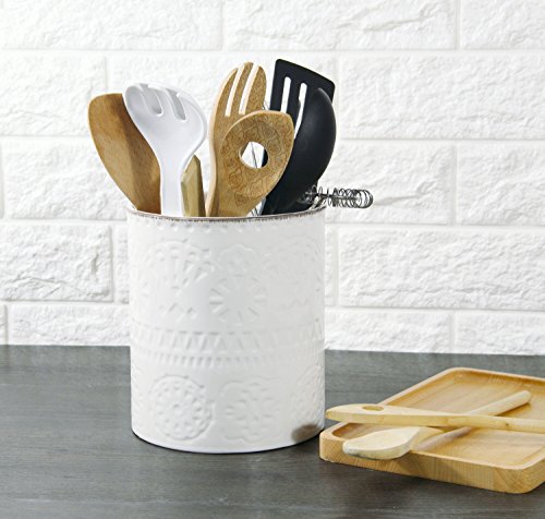 Lifver Fine Embossed Ceramic Crock Utensil Holder, 7.2" x 6.2", White