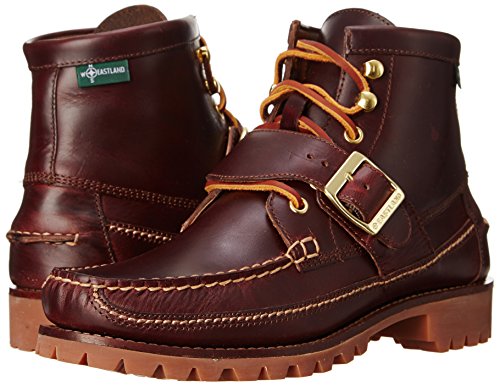 Studio : Eastland Publisher : Eastland Binding : Apparel Product Description Eastland-1955 Edition boots in smooth leather with rugged industrial details. An adjustable buckle strap fastens over the lace-up front. Moc toe. Welted to a Vibram wedge sole. 0