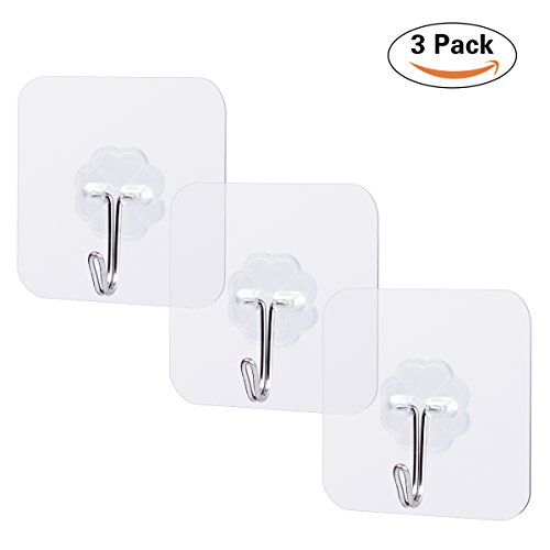 Reusable Adhesive Wall Hooks, Heavy Duty Wall Hanger Stickers with Stainless Hooks- No Damage Wall Ceiling Decoration Hanging Coat/towel/robe/bags (Clear, 3PCS)