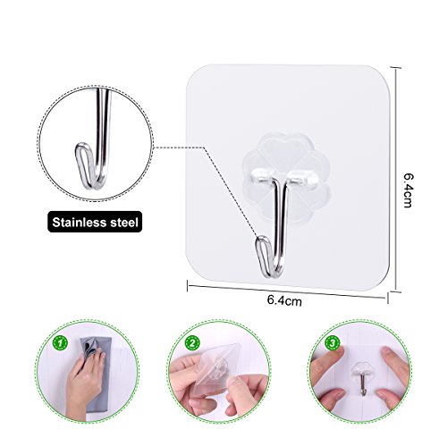 - ★HIGH QUANTITY MATERIAL- Stainless steel hook+ PVC adhesive material. Waterproof and oil-proof, extreme temperature resistance. Size 2.5"x2.5".