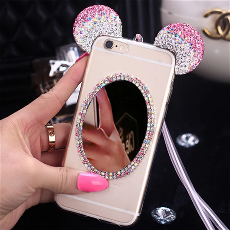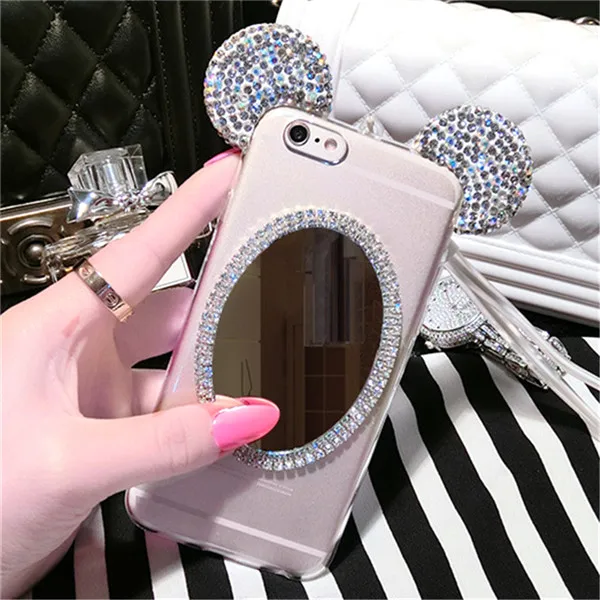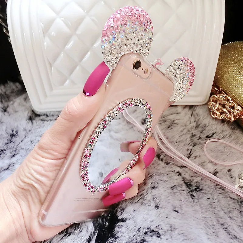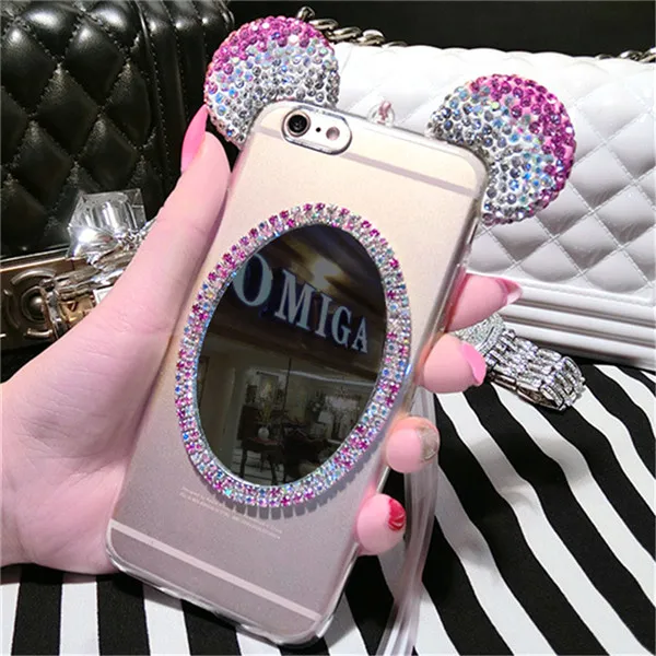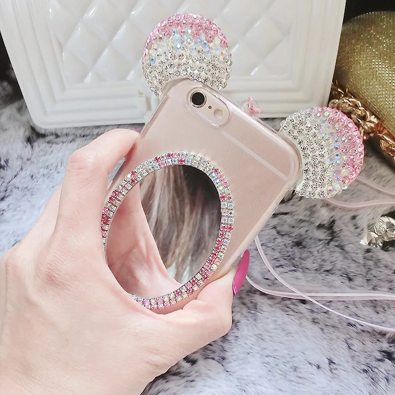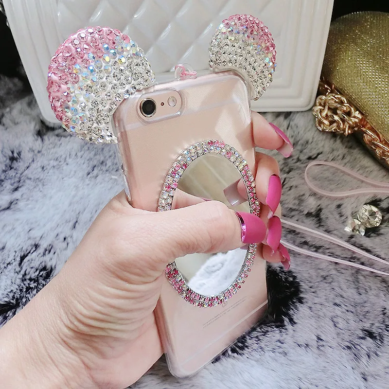 Features:Rhinestone Mirror Mickey Ears Cartoon Case