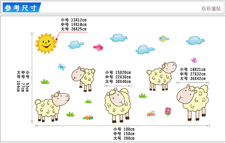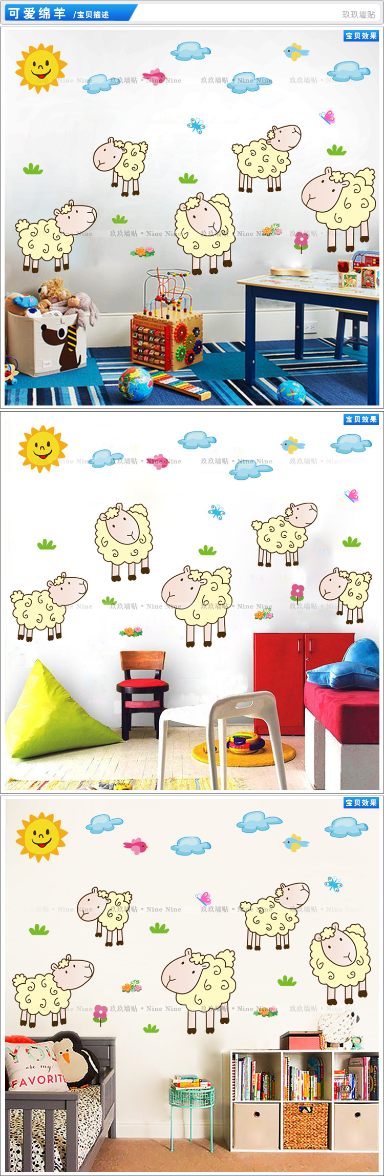 幼儿园儿童房托儿所小饭桌午睡角墙面装饰墙贴卡通小绵羊贴画贴纸