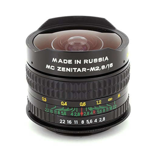어안렌즈MC Zenitar 16?mm F / 2.8렌즈는 콤팩트short-focus,매우 광각인 렌즈는,풀 프레임의 공개 되고 엔을 그리는 바와 같이(하도록) 스포트를 프레임은 아님은,초광각180도 필드의 뷰가 표시되지 있습니다. 따라서,다음과 같은 아키텍쳐,풍경,그룹 사진을 삭제합니다.어안렌즈는,인스턴트인 개구부의 다이어프램.이 렌즈는,높은화질,빅 밝기,와 작은 오브젝트의 상세의 전송 기능으로 허가를 아마츄어 또는 특별한 화상 등의 각종의 재현성,매크로와 Micro모드 사진.Clarifying다 층코팅 된 렌즈가 전송되고, 특히 수익성의 높은 콘트라스트와 화상의 선명함을 제공하는 광산란을 경감하고, 촬영중에서도 glares는 큰폭으로 없어져 백 라이트 모드와 휘도의 커다란 차이의 오브젝트의 배경에서는 사용 할 수 없습니다. 촬영할 때의 최소 거리, M : 0?,3.중량, KG : 0,31.