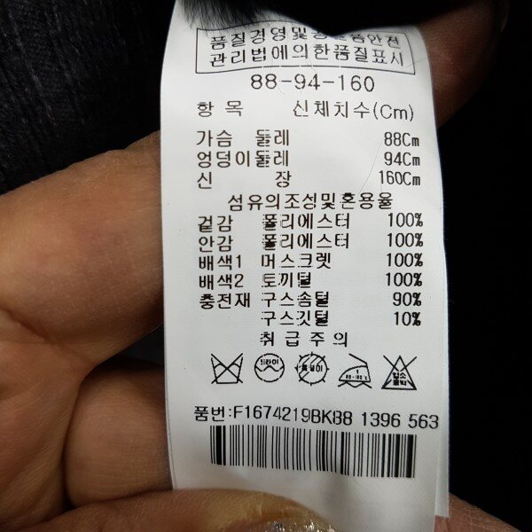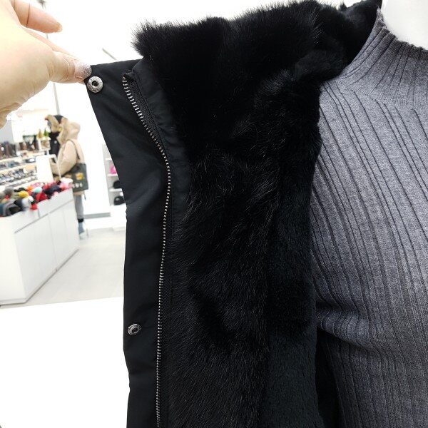 충전제가 구스다운이며 안감이 부드러운 토끼털과 머스카렛으로 이루어진 상품으로 요즘같이 추운겨울 가볍고 고급스럽게 착용하기 좋은 아이템입니다.
