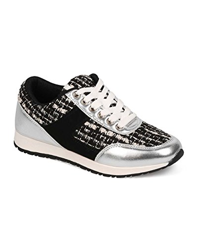 (Wild Diva)/Women's/Classic Fashion Sneakers/DIRECT FROM USA/Wild Diva EF89 Women Tweed Mix Media Lace Up Fashion Sneaker - Black