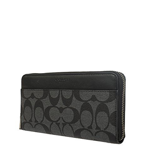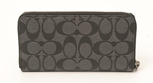 Binding : Apparel Product Description Signature PVC Coated Canvas Zip Around Closure 12 Credit Card Slots 2 Full-Length Bill Compartments 3 Large Expandable Compartments Exterior slip pocket on front Zip Coin Pocket Fabric and leather lining Measurements Approximately: 7 1/2" (Length x 4" (Height) x 1" (Depth) 0