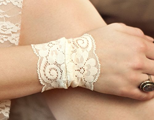 -. Title : Lace Wrist Cuff Bracelet (Ivory) Wide Stretch Jewelry for Women