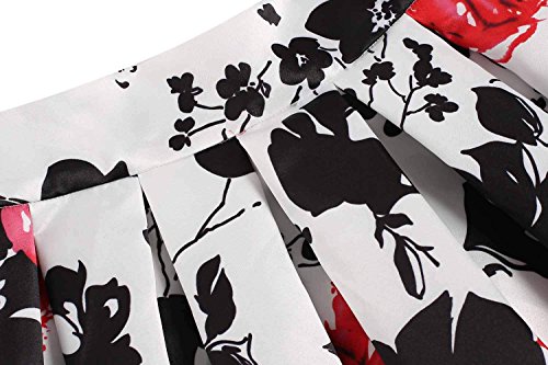 Title : ACEVOG Women A Line Floral High Waist Flared Party Long Dress Sundress Skirt Red XXL