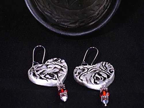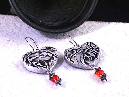 -. Title : 1.75" Abstract Rose Heart Statement Earrings Silvertone Botanical Dangles Handmade Abstract Rambling Rose Flowers Romantic Heart