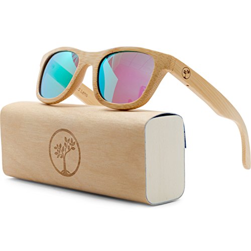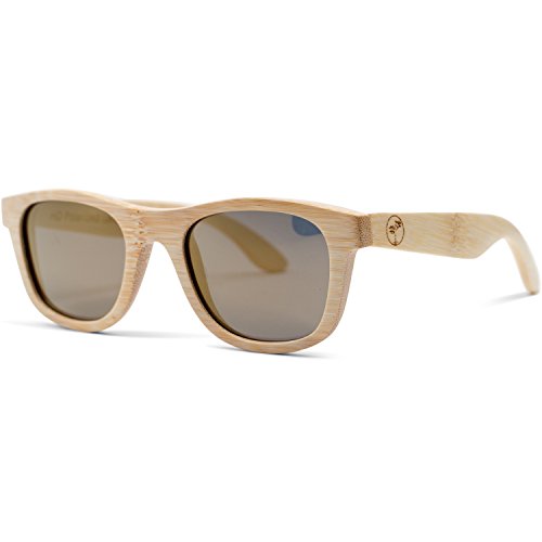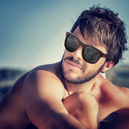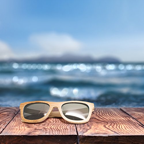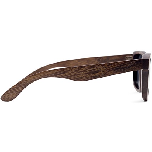 -. Feature : DESIGNER POLARIZED LENSES - Your eyes are protected against all UV radiation and the polarized lenses remove all glare. Features a custom designed 52mm wide lens, Just like the ones you'd get at Sunglass Hut. / UNIQUE HAND-MADE BAMBOO FRAMES - Since they are made with 100% natural bamboo wood, every pair is different. Bamboo is a sustainable source of wood and can be re-harvested making it very eco-friendly. Now you can look fashionable and cool while saving the environement. Carbonized bamboo frames strengthen the glasses and enrich the color. / TRUE NATURAL LOOK - Fantastic looking and very unique wayfarer sunglasses for men and women for an affordable P.R.Ice. Compare these to Warby Parker, Knockaround, Persol, , , , , , or any other designer sunglass brand. / FREE MICROFIBER POUCH - Each piece comes with a high quality microfiber cloth pouch to protect and clean your glasses so you always look your best. / FLOATS IN WATER - Because of the nature of bamboo, these sunglasses are waterproof and float in the water. This makes them perfect for boating, fishing, and water sports like stand-up paddleboarding, surfing, wakeboarding, skiing, and many more outdoor activities.