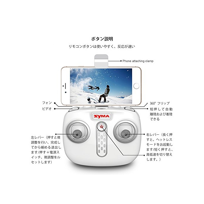 원본상품명: ドロン マルチコプタ SYMA 480PHDカメラ付き FPV 2.4GHz 4CH 6軸ジャイロ ios&Android生中可能 3D宙返り 高度維持機能 ミニ型 日本語明書付き クリスマス