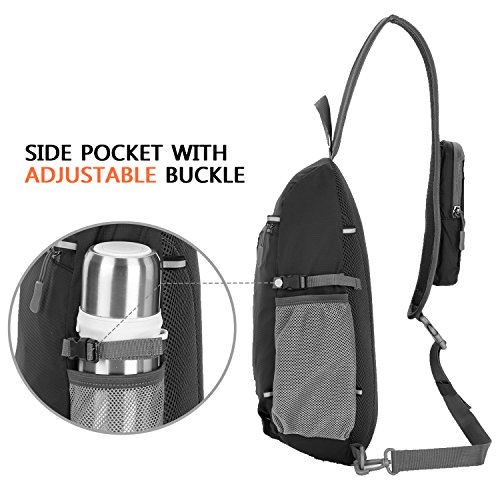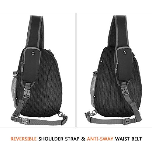 -. Feature : DURABLE AND COMFORTABLE: The lightweight construction combines with water-resistant material, provide extra strength and long-lasting performance with the lightest weight possible. Dilated padded back with breathable shoulder strap keeps your skin cooler on contact. The strap can be switched left or right, tighten or loosen, hung high or low as for your comfort. Anti-sway design waist belt is good defense against the shock. / MULTI-COMPARTMENTS AND KEEP THINGS ORGANIZED: This bag features an abundance of handy pockets: two zipper pockets, a side pocket and a phone pocket with headphone access. The biggest compartment can hold a camera, iPad3/4/5/6, Kindle, or A4 magazine. The smaller compartment has three versatile inter-layers and one key rack that can well organize small necessities. / HIGHLIGHT DETAILS: The side pocket with adjustable buckle keeps the water bottle from falling out. The cell phone pocket can hold today's cell phone, such as iPhone 6/7 Plus, or walkie talkies, which is a lot easier to hear the cell phone ring than if it was inside the bag itself. Headphone can be put into the slot on phone pocket, which is convenient to access music on the phone. / IDEAL APPLIACATIONS: Outdoor sports (hiking, biking, camping, cycling, running, mountain climbing); Casual (multiple storage pockets provided are ideal in daily life, travel and leisure field); Fashion (reversible and cross body shoulder strap provides you with various ways to wear.). All year around (the strapping is long enough to go over a heavy winter coat) / 100% LIFETIME WARRANTY: If you don't like your sling bag or whatever, we'll instantly give you a full refund or exchange a new sling bag, no questions asked.