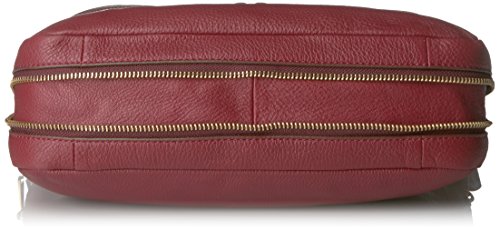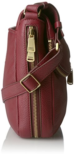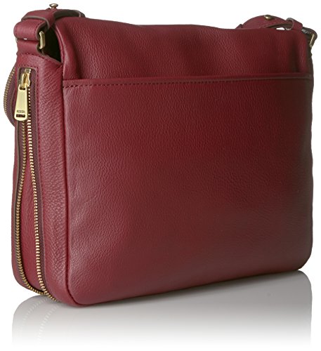Cross-body bag with metallic logo on front and wraparound zipper for expansion