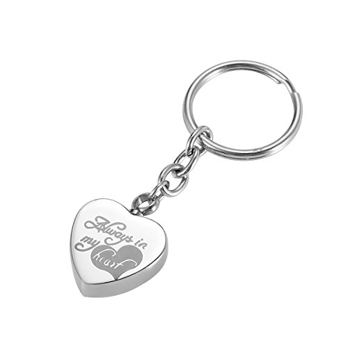 HooAMI Memorial Ashes Always in My Heart Charm Silver Cremation Urn Keepsake Stainless Steel Keychains