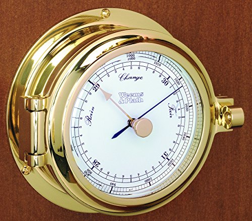 -. Binding : Sports -. Brand : Weems & Plath -. Color : Brass -. EAN : 0721002210708 -. Feature : The Cutter Barometer is housed in a forged brass, front-opening hinged bezel case that is smaller in diameter and depth than the Martinique barometer which also features the porthole style. It is built with a fully adjustable aneroid movement. The Cutter Barometer and matching quartz clock are also available on a wood plaque for a stunning presentation. / Inch and millibar scales Calibrated for altitudes to 3,500 feet above sea level Includes instructions and mounting hardware Lifetime warranty -. Label : Weems & Plath -. Manufacturer : Weems & Plath -. Model : 210700 -. MPN : 210700 -. PackageQuantity : 1 -. PartNumber : 210700 -. ProductGroup : Sports -. ProductTypeName : SPORTING_GOODS -. Publisher : Weems & Plath -. ReleaseDate : 2007-08-11 -. Studio : Weems & Plath -. Title : Weems & Plath Cutter Collection Barometer -. UPC : 721002210708