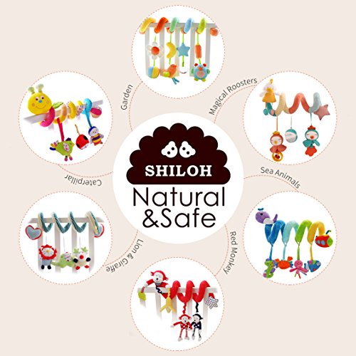 Spiral shape attaches easily to strollers, cribs, and car seats,A great on-the-go travel toy, attaches easily by wrapping around most anything