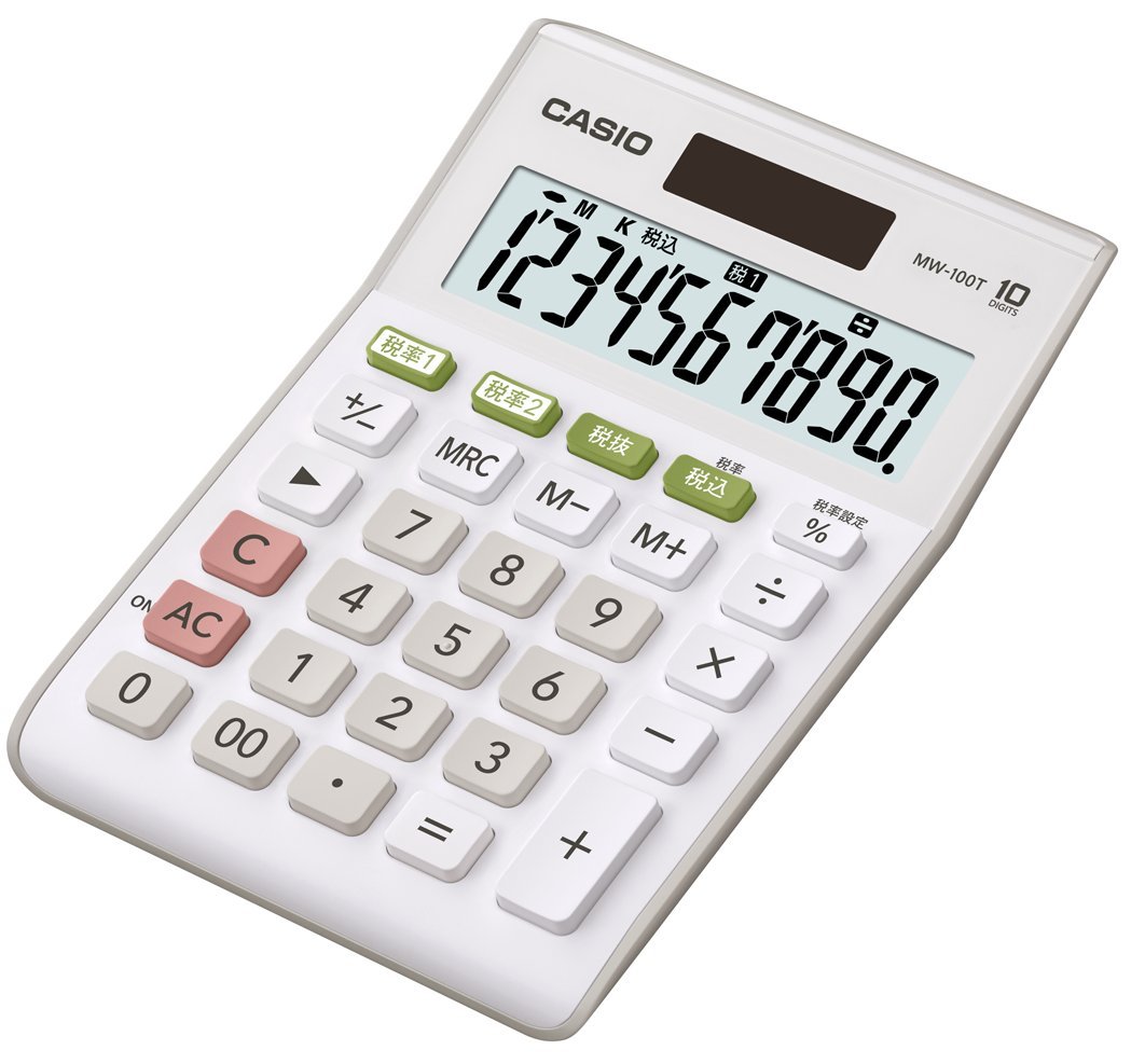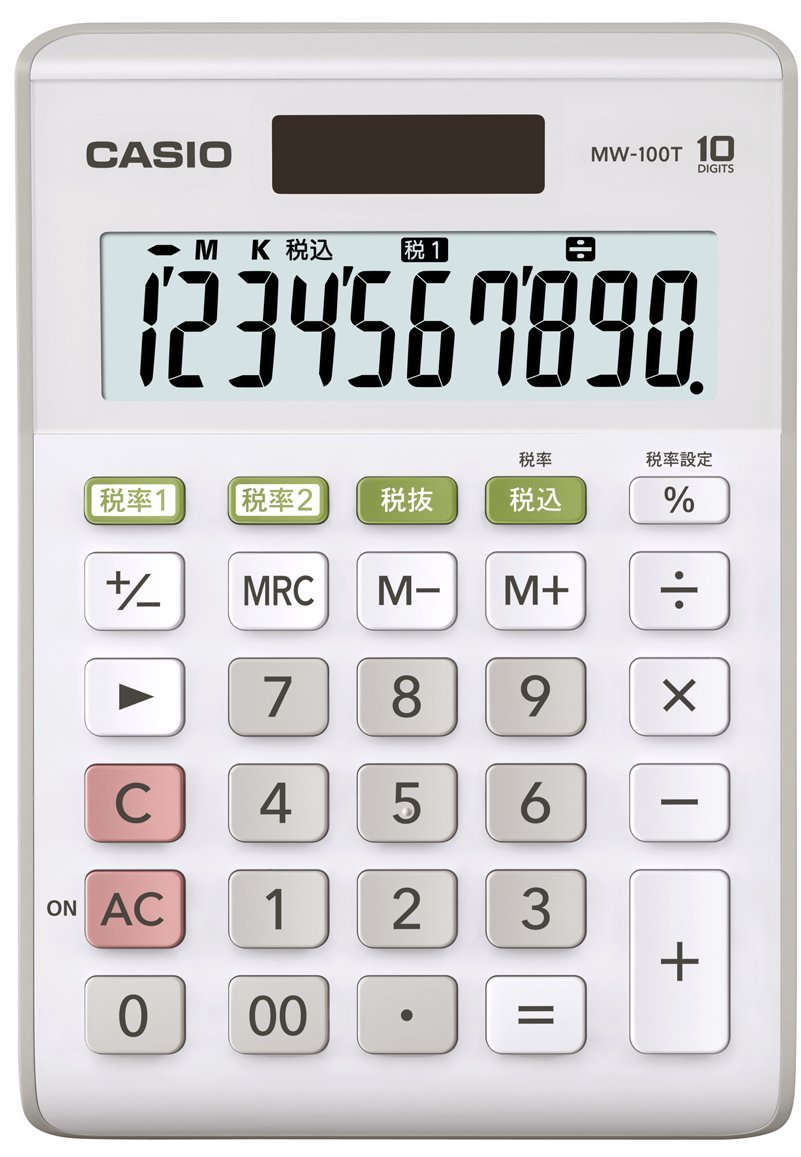 Casio Standard calculator W tax rate setting and tax calculation mini just type 10-digit MW-100T-WE-N White