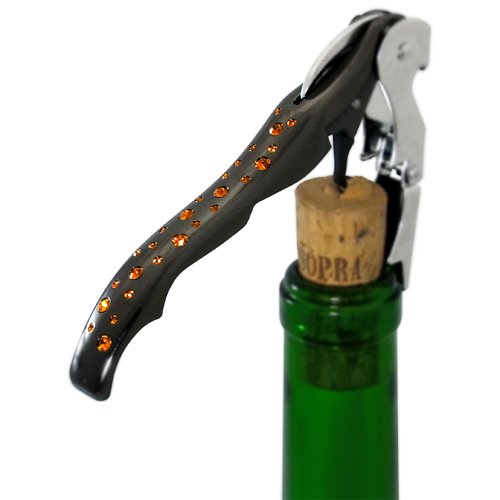 -. Feature : サイズ:12×1.1×2.5cm / 本体重量:86g / 素材・材質:ボディ:ダイキャスト(鋳型鋳造)に塗装コーティング フック・ナイフ・スクリュー:ステンレススチール製 / 原産国:スペイン / 大小のスワロフスキーを贅沢に26個(大=8個、小=18個)も散りばめた2段式ソムリエナイフ。大切な方へのプレゼントにオススメです / グランヴァンなどの55mm超の長いコルクも、2度スクリューをねじ込んだり、斜めに無理やり引き抜くことなく、2段フックでだれでも楽に引き上げることができます / デキャンタスを通過直後のワインには細やかな気泡が発生、よりスムースにワインエアレーション(通気活性化)を促し、ワインが見事に「開花」美味しく楽しめるのです