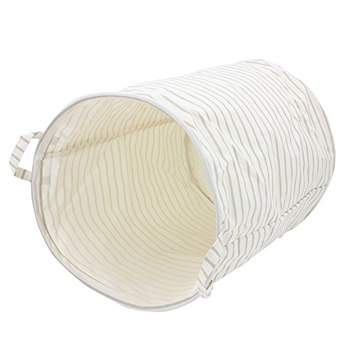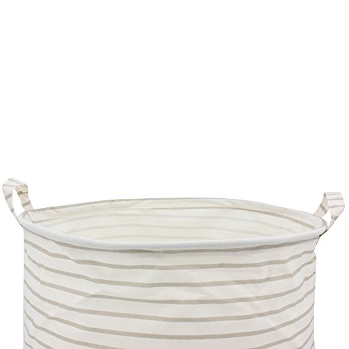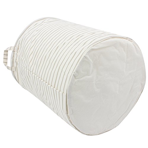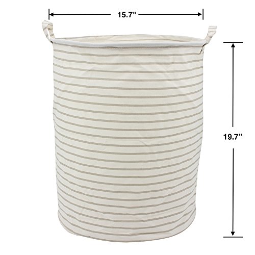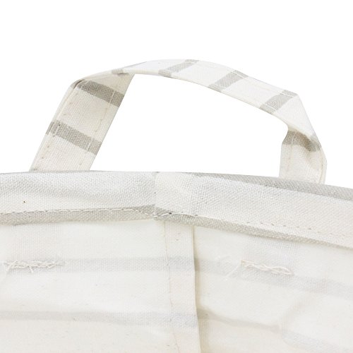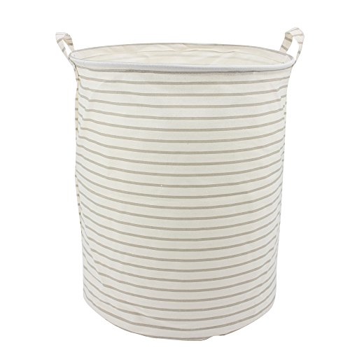 19.7" Large Laundry Hamper Bucket Waterproof Coating Cotton Linen Laundry Basket Collapsible Washing Basket Canvas Storage Basket Bin Home Nursery Toy Organizer (Grey & White Stripe)