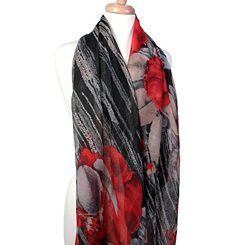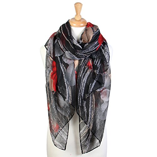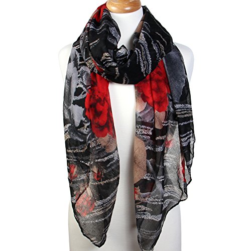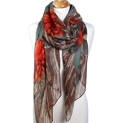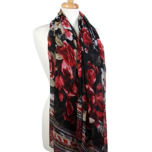 | Scarfand's Artistic Print Romantic Rose Long Scarf / Shawl |