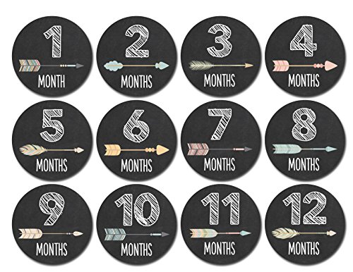 -. Binding : Baby Product -. Brand : Months In Motion -. Department : Baby-girls -. EAN : 0760194481039 -. Feature : Just peel, stick, and take a photo to document your baby's first year! / Makes a wonderful shower gift! / The perfect baby photo prop! / Printed on white matte sticker so no glare in photos / Includes 12 precut stickers that are approximately 3.93 inch diameter -. IsAdultProduct : 0 -. Label : Months In Motion -. LegalDisclaimer : Stickers are to be used under adult supervision only. Do not leave stickers on baby unattended. -. Manufacturer : Months In Motion -. Model : 1062 -. MPN : 1072 -. PackageQuantity : 12 -. PartNumber : 1072 -. ProductGroup : Baby Product -. ProductTypeName : BABY_PRODUCT -. Publisher : Months In Motion -. Studio : Months In Motion -. Title : Months In Motion - Baby Month Stickers - Monthly Baby Sticker for Girls - Tribal Arrows (1106) -. UPC : 760194481039