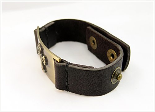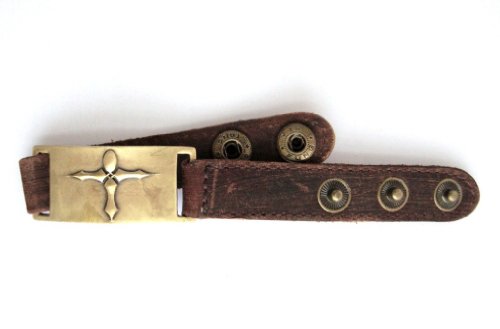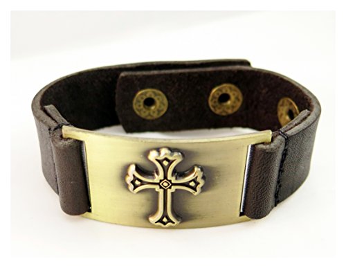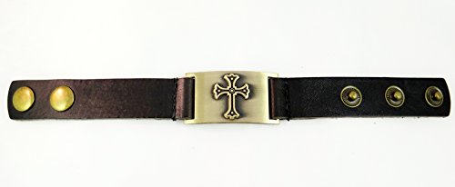 -. Binding : Jewelry -. Brand : 1000K' ways Designs -. Color : Brown -. Department : womens -. EAN : 0100090044042 -. Feature : Made of brown leather and clean pewter plated with brass / fits 5 to 7 inches wrists (12 to 18.5 cm) cofortably / Rustic brass color plate is 1 inch x 1 3/4 / 8.5 inches long with 3 option snaps / The metal is 1 inch wide and the leather 5/8 -. Model : 9072 -. MPN : a90072 -. PartNumber : a90072 -. ProductGroup : Jewelry -. ProductTypeName : FASHIONNECKLACEBRACELETANKLET -. Title : Cross Bracelet, Leather, Adjustable -. UPC : 100090044042